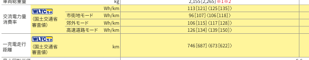各EV車のカタログや諸元を見ていると大きく二つの表記方法がある。