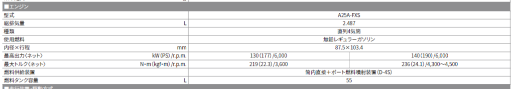 同じ2.5Lエンジンを積んでいるのに、