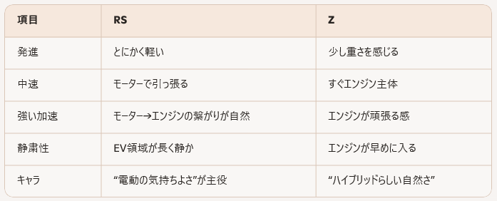 結論:RSは“モーターを使い切れる車”、Zは“モーターを補助で使う車”